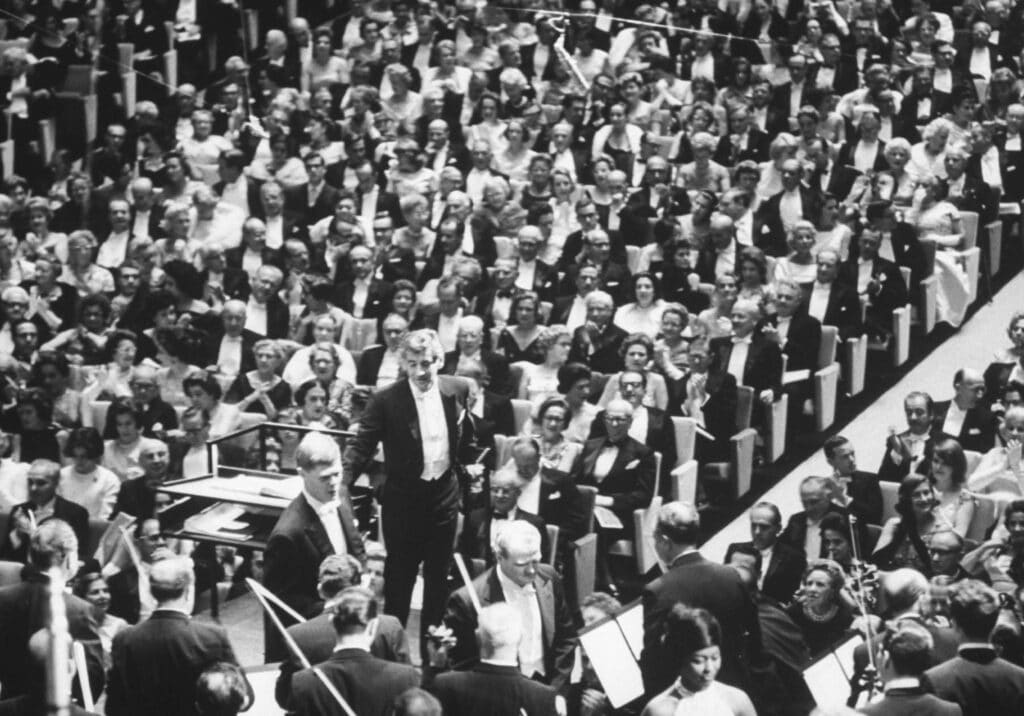 In 1962, Leonard Bernstein conducted the inaugural performance at Philharmonic Hall in Lincoln Center, a monumental moment in cultural history. Standing confidently at the podium, he exemplified the spirit of innovation and excellence in music.