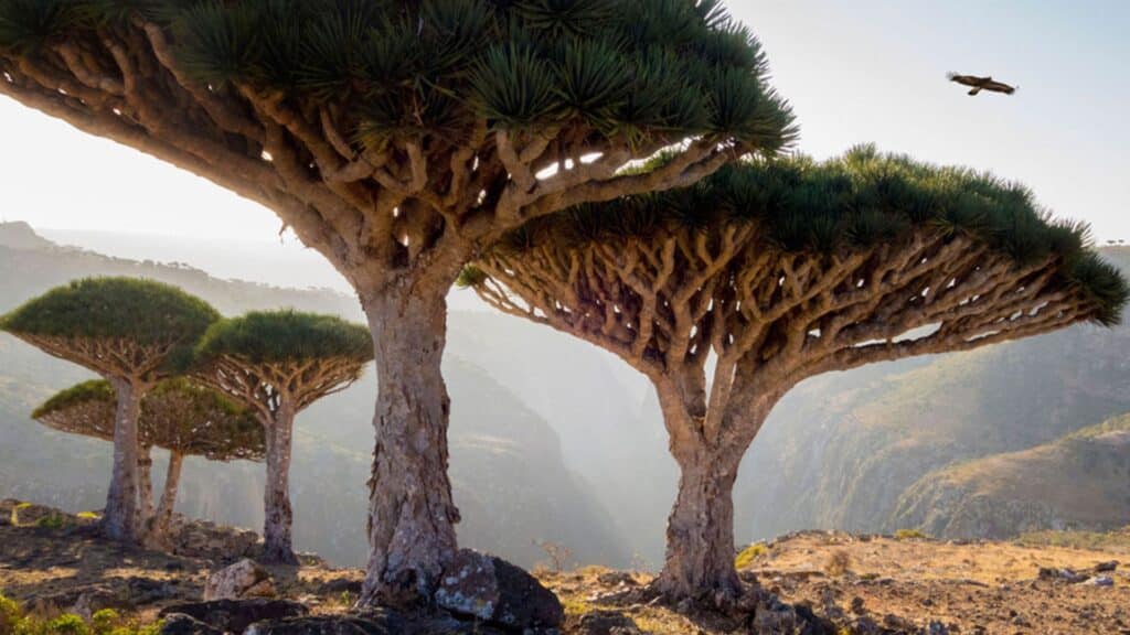 Socotra is famous for flora so unusual that it looks like an alien planet. Its umbrella-shaped dragon blood trees and swollen desert roses seem designed by a sci-fi concept artist. The isolated island evolved species found nowhere else on Earth, resulting in landscapes that defy expectation.